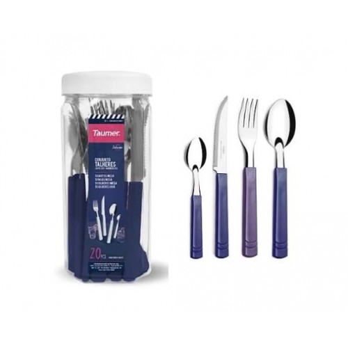 Jogo de Talheres 20Pc. + Pote Plástico Saturno Lilás